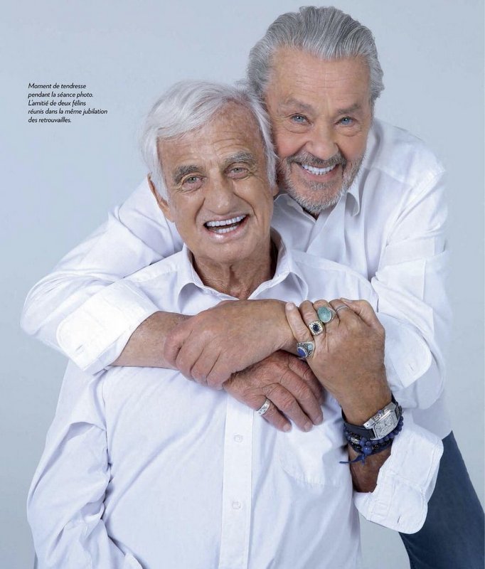 Ez alkalomból a 86 éves Jean-Paul Belmondo és a 83 éves Alain Delon is szerepel a magazinban egy kimondottan derűs hangulatú fotósorozattal.